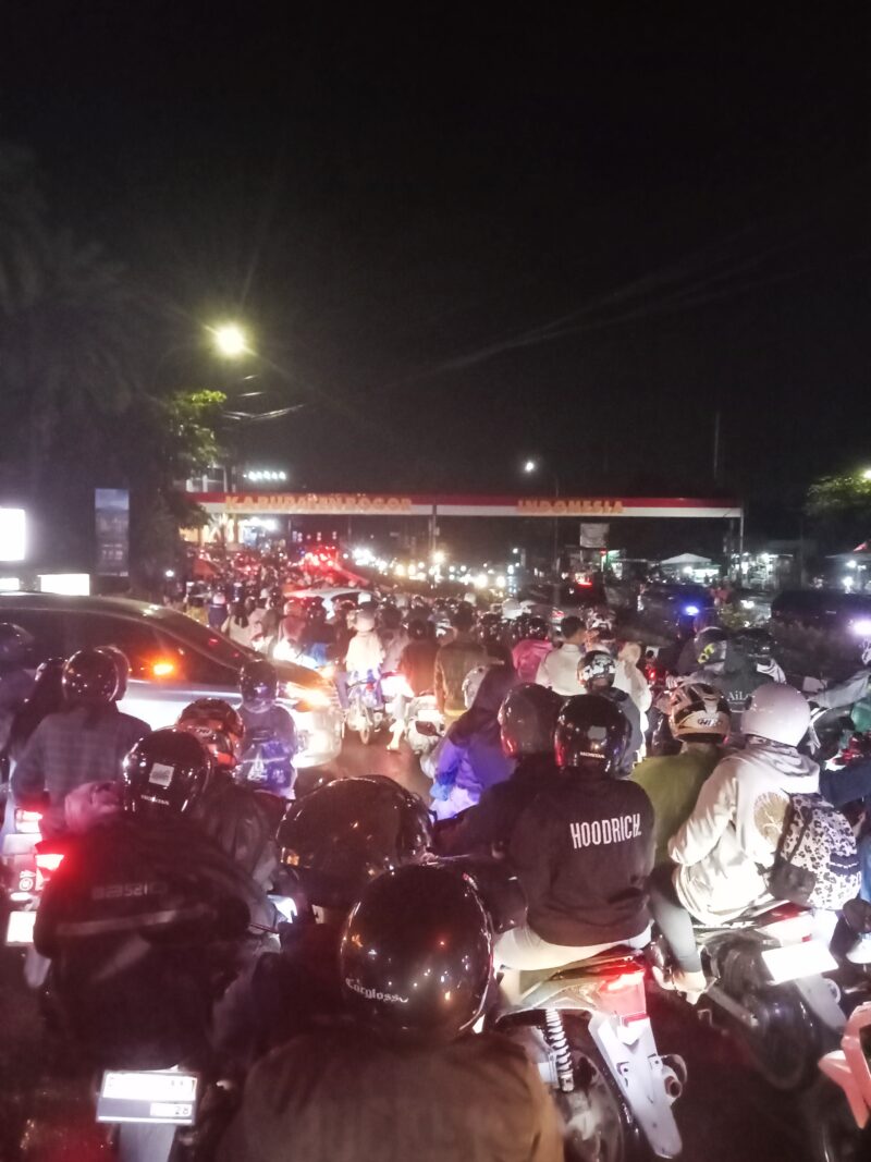 BOGOR, 24 Maret 2026 – Situasi arus balik mudik dan wisata pada H+3 Lebaran 2026 di kawasan Jalur Puncak, Bogor, mulai menunjukkan peningkatan volume kendaraan yang signifikan. Hingga Selasa (24/3) malam, titik pertemuan arus di Pertigaan Gadog terpantau padat merayap, didominasi oleh kendaraan roda dua yang bergerak menuju arah Jakarta dan Tangerang.