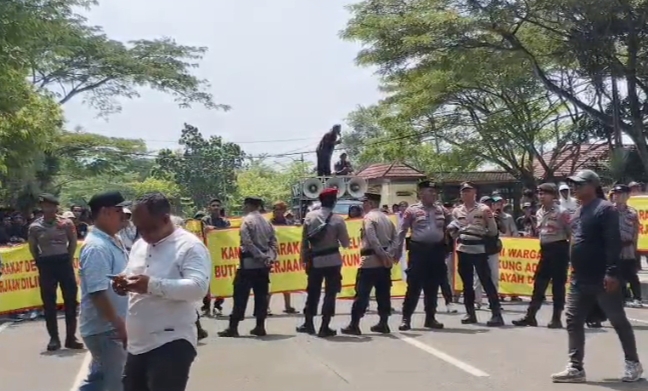 Di sisi berlawanan, massa pendukung pembangunan juga menyuarakan tuntutan. Spanduk berisi dorongan pembukaan lapangan kerja dikibarkan, sementara dari atas mobil komando, orator mendesak pemerintah agar memperluas ruang investasi.