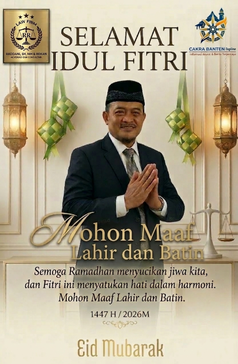TANGERANG, 20 Maret 2026 – Memasuki pengujung bulan suci Ramadan yang penuh berkah, firma hukum Raddani & Rekan secara resmi menyampaikan ucapan selamat Hari Raya Idul Fitri 1 Masyawal 1447 Hijriah kepada seluruh klien, mitra bisnis, serta masyarakat Indonesia yang merayakan.