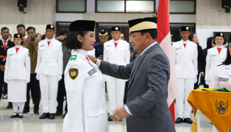 Bupati Tangerang Moch. Maesyal Rasyid melantik 54 peserta Paskibraka Kabupaten Tangerang 2025.