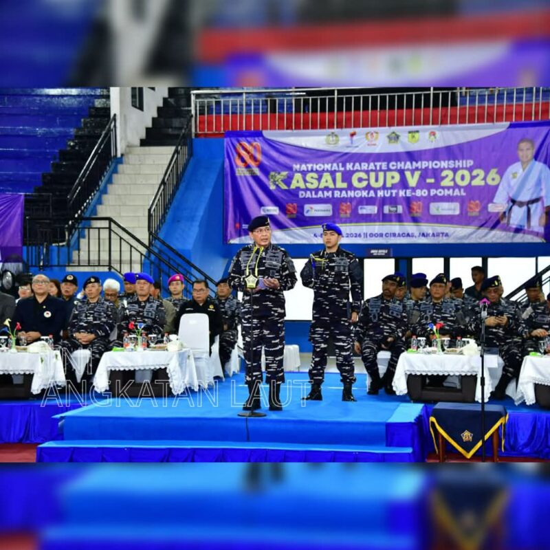 Jakarta, 4 April 2026,- TNI AL menyelenggarakan Kejuaraan Nasional Karate KASAL CUP V Tahun 2026 dalam rangka memperingati Hari Ulang Tahun (HUT) ke-80 Polisi Militer Angkatan Laut (POMAL). Kegiatan ini menjadi ajang pembinaan prestasi sekaligus penguatan karakter prajurit dan generasi muda, yang secara resmi dibuka oleh Kepala Staf Angkatan Laut (Kasal) Laksamana TNI Dr. Muhammad Ali yang diwakili oleh Wakil Kepala Staf Angkatan Laut (Wakasal) Laksdya TNI Edwin, S.H., M.Han., M.H., di GOR Ciracas, Jakarta Timur, Sabtu (4/4).
